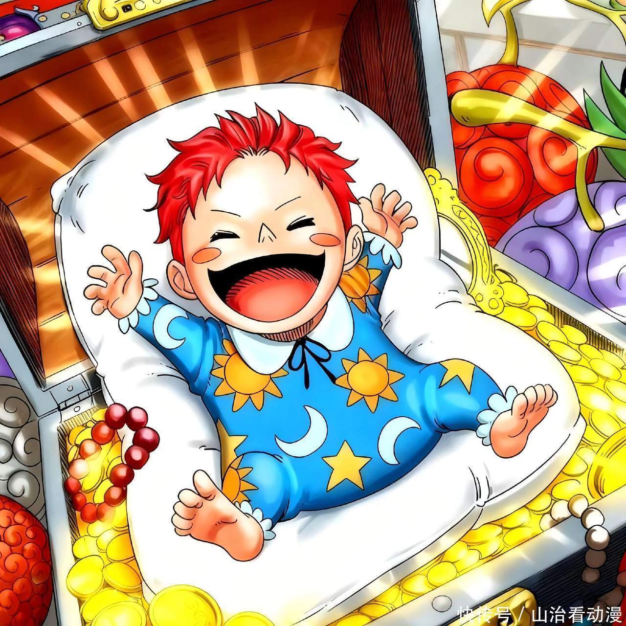 罗杰海贼团的人正在庆祝,他们听到了一个婴儿的笑声,红发香克斯躲在宝箱里,他已经苏醒了。罗杰海贼团的人走到宝箱里,他们打开宝箱,发现了红发香克斯躲在宝箱里,罗杰海贼团得到了一个婴儿,估计是夏琪在抚养红发香克斯。