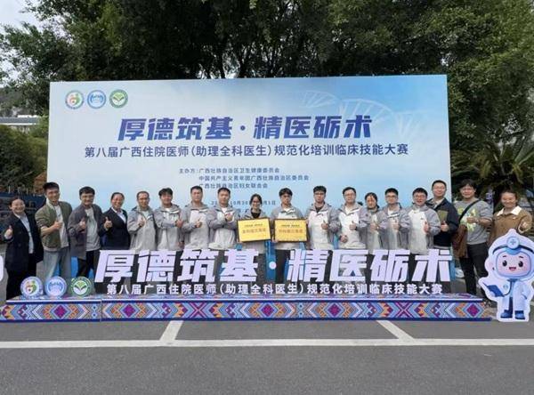 11月1日,第八届广西住院医师(助理全科医生)规范化培训临床技能大赛在广西壮族自治区南溪山医院顺利落幕。广西医科大学第一附属医院河池医院·河池市人民医院选派的外科组与全科组两支参赛队伍,凭借扎实的临床技能和出色的现场发挥,双双荣获三等奖。